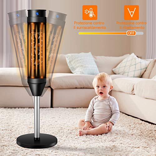 【Oscillazione 40°】Il calorifero può oscillare di 40° da una parte all'altra e distribuire velocemente e uniformante il calore nella stanza mantenendo la temperatura costante. Il telecomando ti permette di regolare l'angolo quando e dove vuoi.