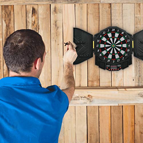 COSTWAY Tirassegno Bersaglio Elettronico Professionale, Bersaglio Automatico Display a LED e 12 Freccette, 27 Diversi Giochi di 216 Variazioni, per Un Massimo di 8 Giocatori, con Porte, 47x55x3cm