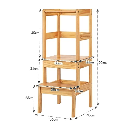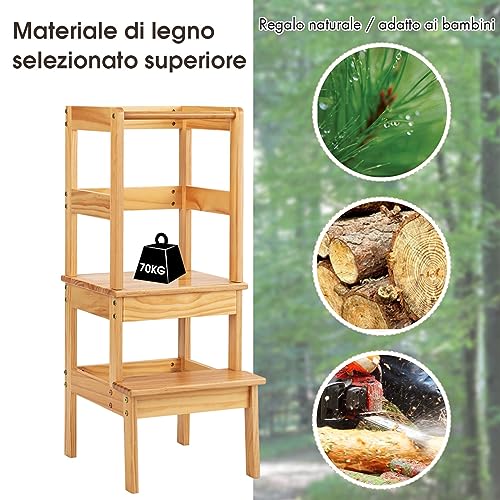 COSTWAY Torre di Apprendimento per Bambini, Sgabello da cucina per bambini con Bracciolo di Sicurezza e Poggiapiedi Antiscivolo, Adatto per Bambini dai 18 Mesi ai 3 Anni (Naturale)