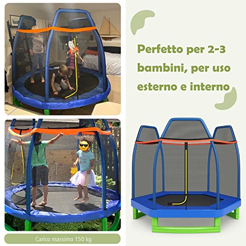 COSTWAY Trampolino Elastico per Bambini 223 cm, Tappeto Elastico per Bambini in Acciaio, con Rete e Cuscinetto a Molle, Ideale per Giardino e Cortile, Carico Massimo 50 kg (Blu)
