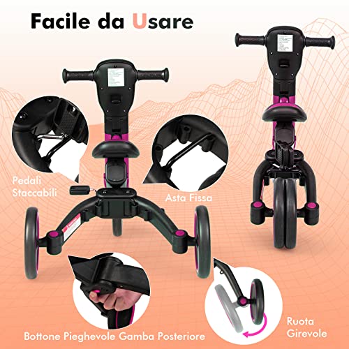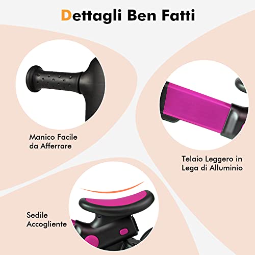 COSTWAY Triciclo per Bambini 3 in 1, Bicicletta senza Pedali con Maniglia Regolabile, Pedali Rimovibile, per Bambini 1-6 Anni, Lega di alluminio (Rosa)