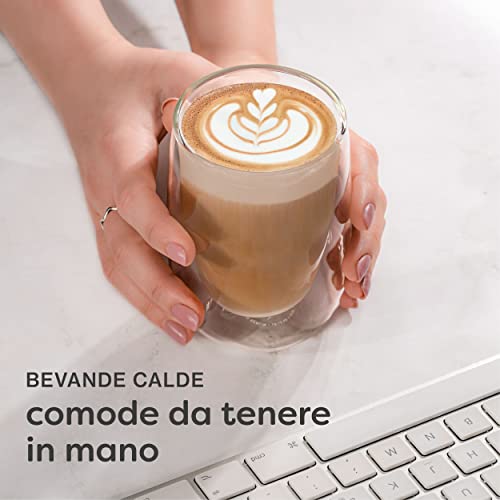Cosumy 4 Bicchieri a Doppia Parete da 250ml per Cappuccino - Mantengono la Temperatura - Proteggono le Mani - Con Confezione Regalo