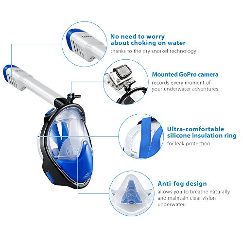 COSUPA Maschera da Snorkeling, Maschera Integrale, Visuale Panoramica a 180°, Respirare Facilmente, Compatibile con Gopro, Anti Ingresso dell'Acqua e Anti Appannamento