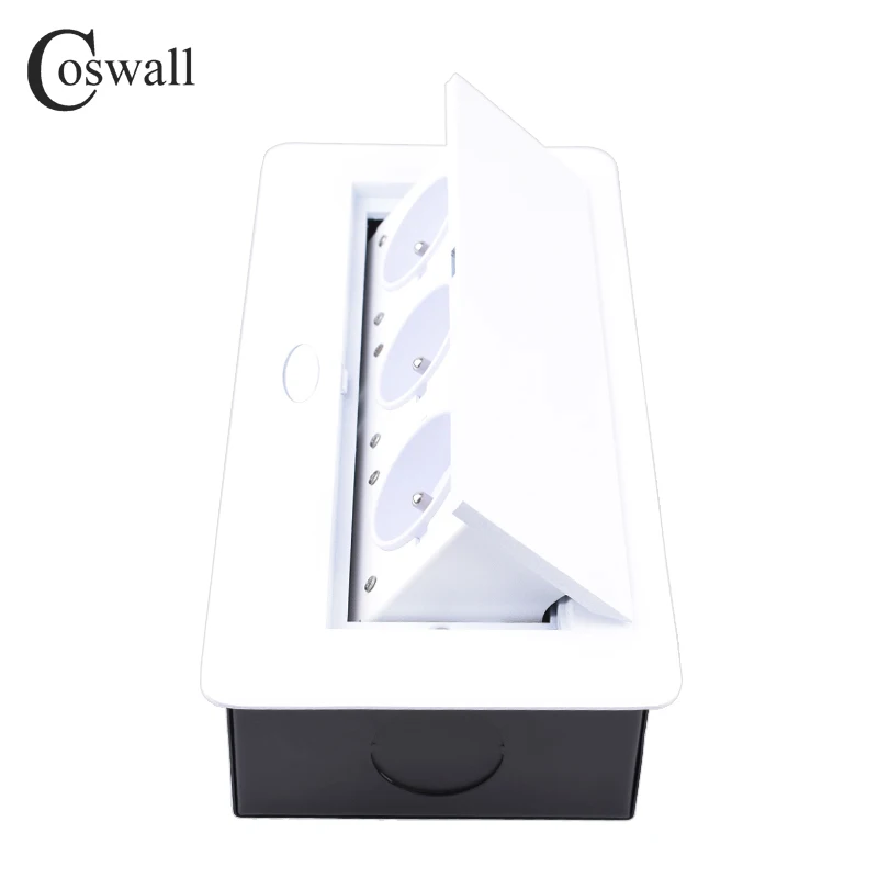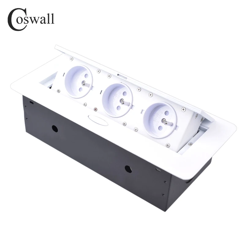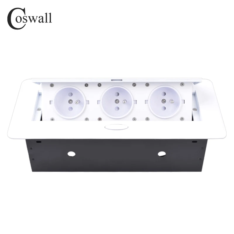 COSWALL Zinc Alloy Plate 16A Silent POP UP 3 French Polish Socket Office Table Outlet Matte White Cover