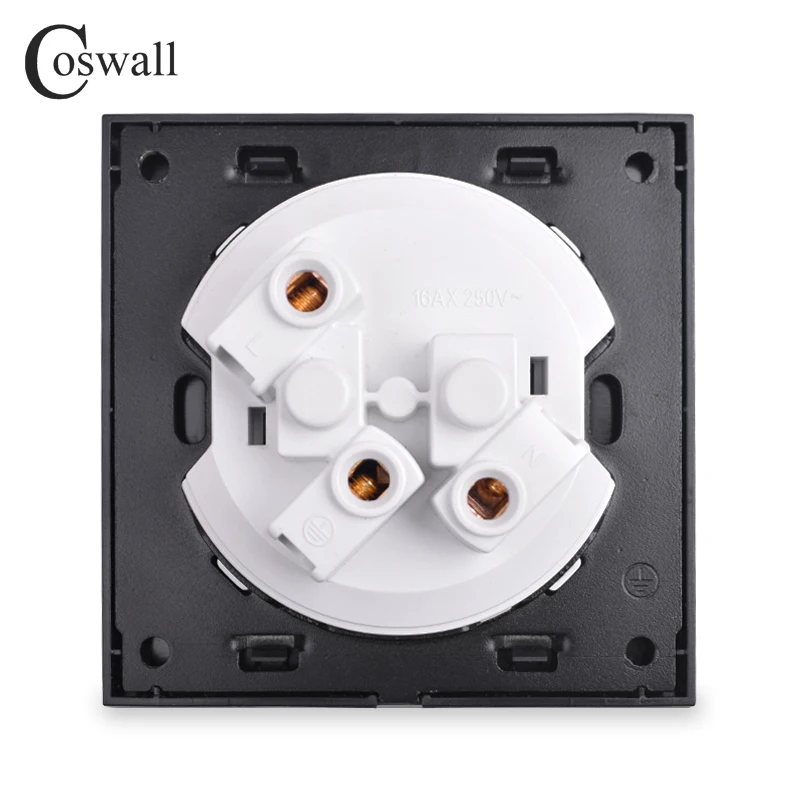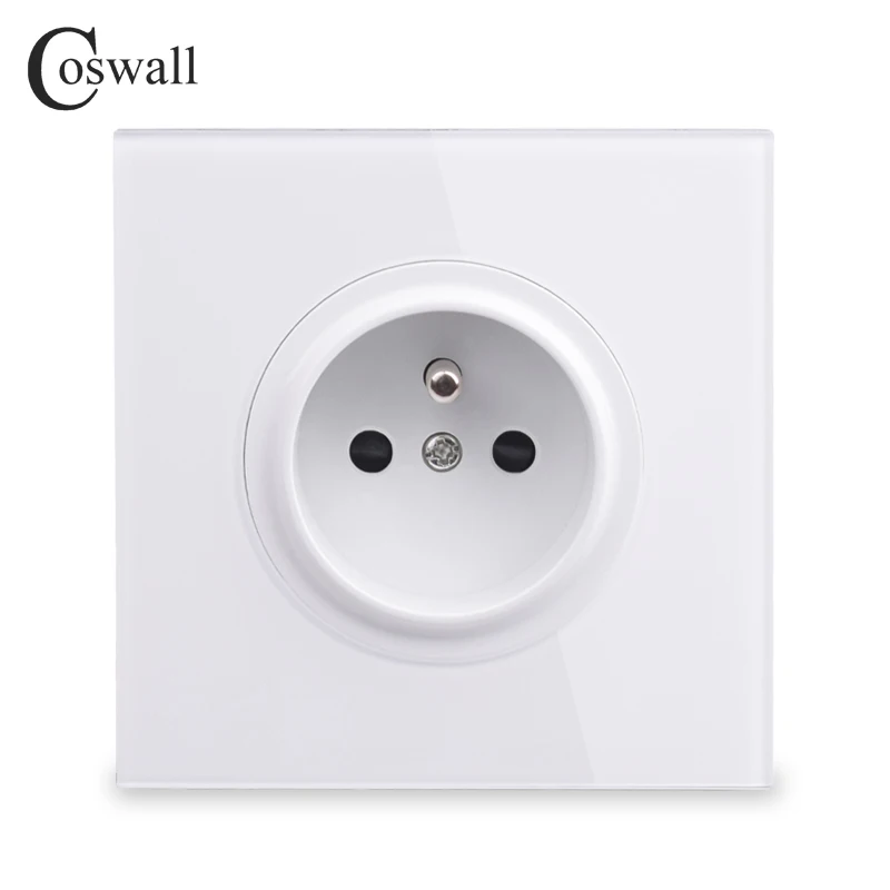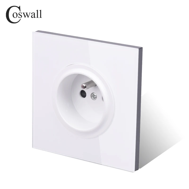 Coswall New Arrival Crystal Glass Panel 16A French Standard Wall Power Socket Outlet Grounded With Child Protective Lock