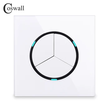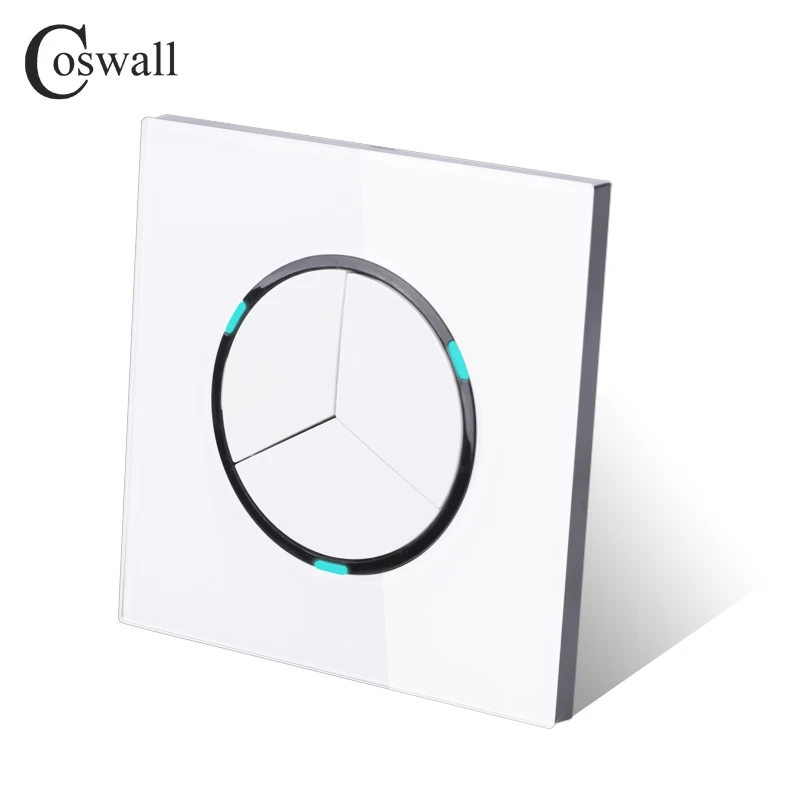 Coswall 2018 New Arrival Crystal Glass Panel 3 Gang 1 Way Random Click On / Off Wall Light Switch With LED Indicator
