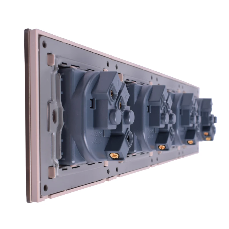 COSWALL Wall Crystal Glass Panel 4 Gang Power Socket Grounded 16A EU Standard Grey Color Outlet With Children Protection Door
