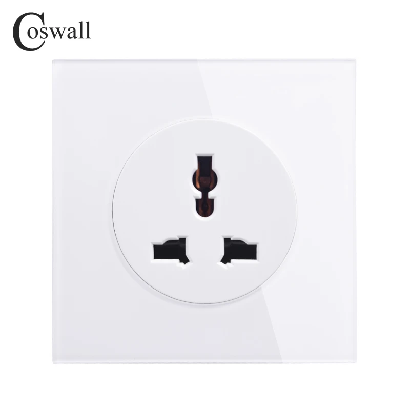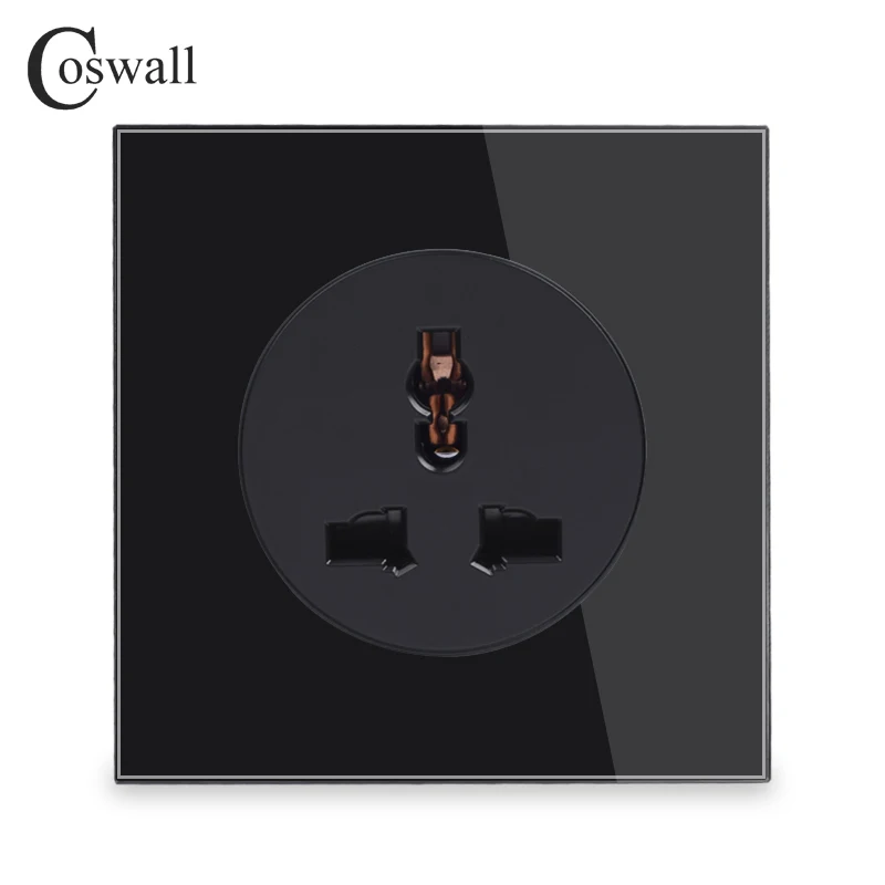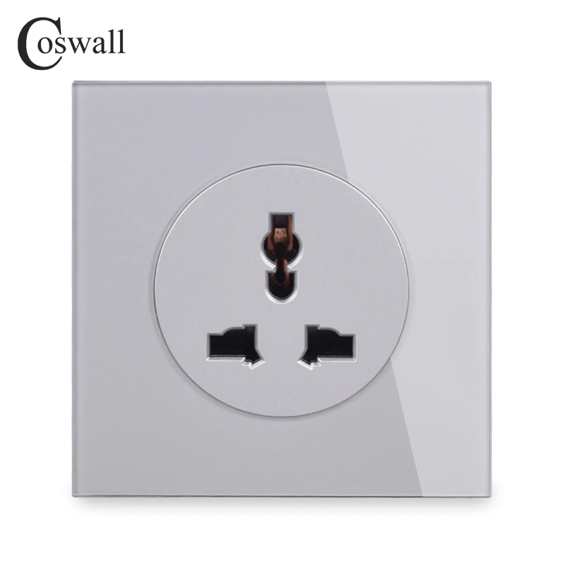 Coswall Gray Grey Crystal Glass Panel 13A Universal Wall Power Socket Outlet Grounded With Child Protective Lock R11 Series
