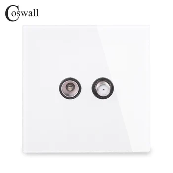 COSWALL Crystal Tempered Glass Panel Wall Satellite Socket With Female TV Outlet Black White Gold Grey R11 Series