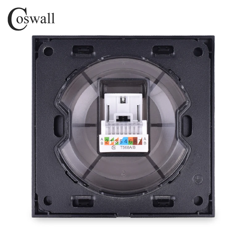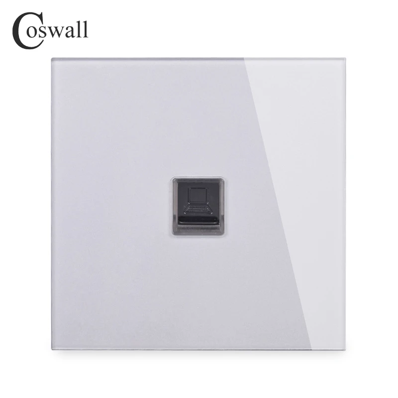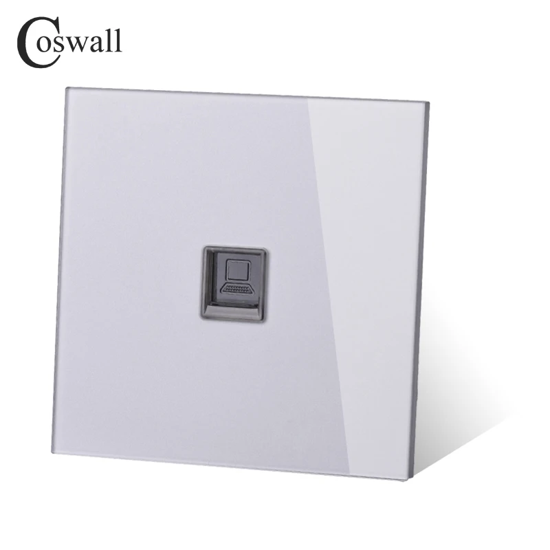 COSWALL Crystal Tempered Glass Panel Wall Socket RJ45 CAT5E Data Computer Connector Internet Jack R11 Series Grey Gray Color