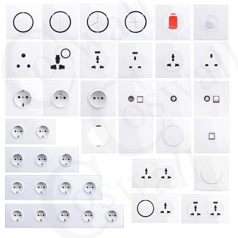 Coswall Crystal Tempered Pure Glass Panel EU Standard Wall Socket + Dual USB Charging Port 2.4A Output 172*86mm R11 Series