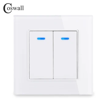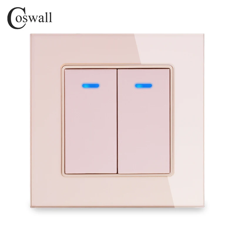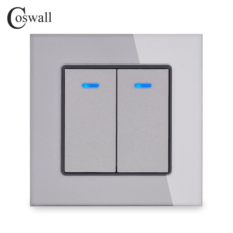 Coswall Luxury Crystal Tempered Glass Panel 2 Gang 1 Way Light Switch On / Off Wall Switch With LED Indicator 16A AC 250V