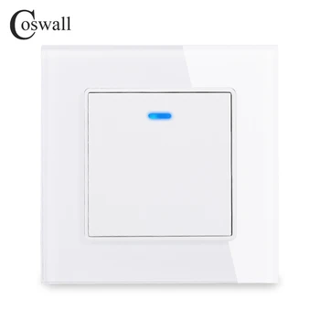 Coswall Luxury Crystal Tempered Glass Panel 1 Gang 1 Way Light Switch On / Off Wall Switch With LED Indicator 16A AC 250V