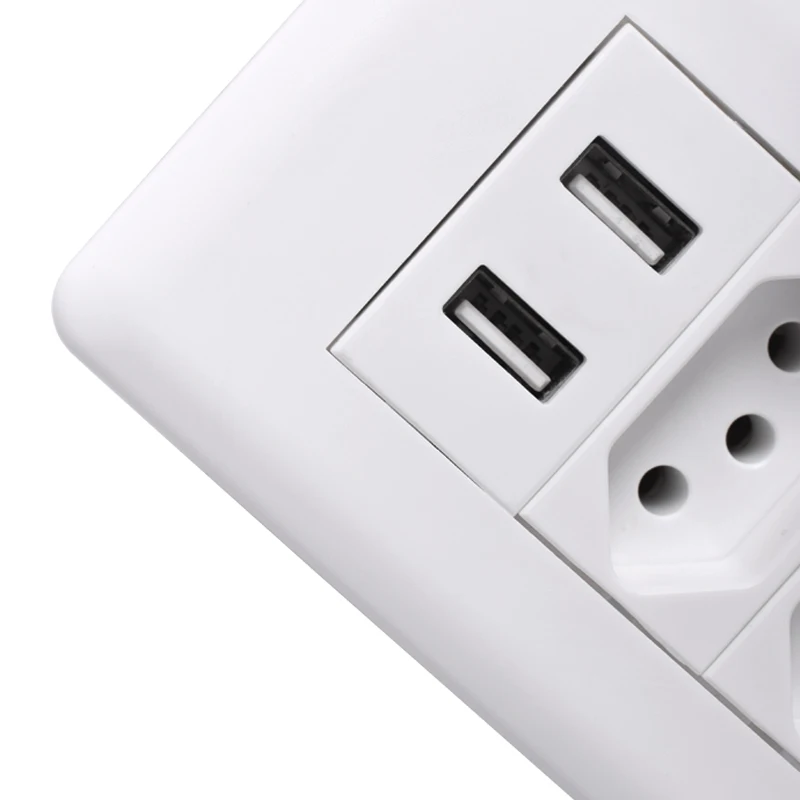 Coswall Wall Power Brazil Socket 15A Brasil Standard Double Soquete 5V 2100mA Dual USB Charger Port 115mm*75mm AC 110~250V