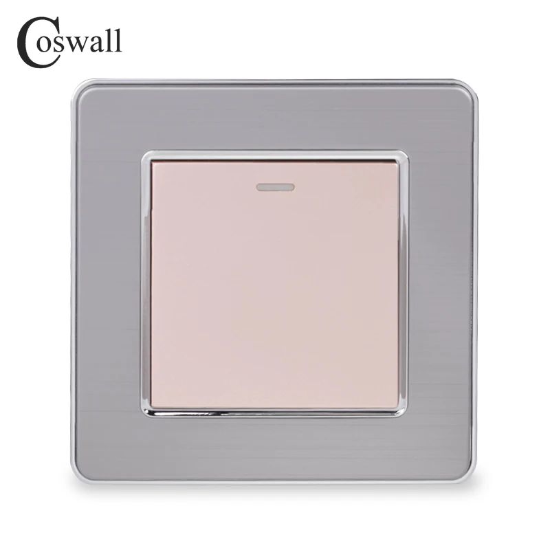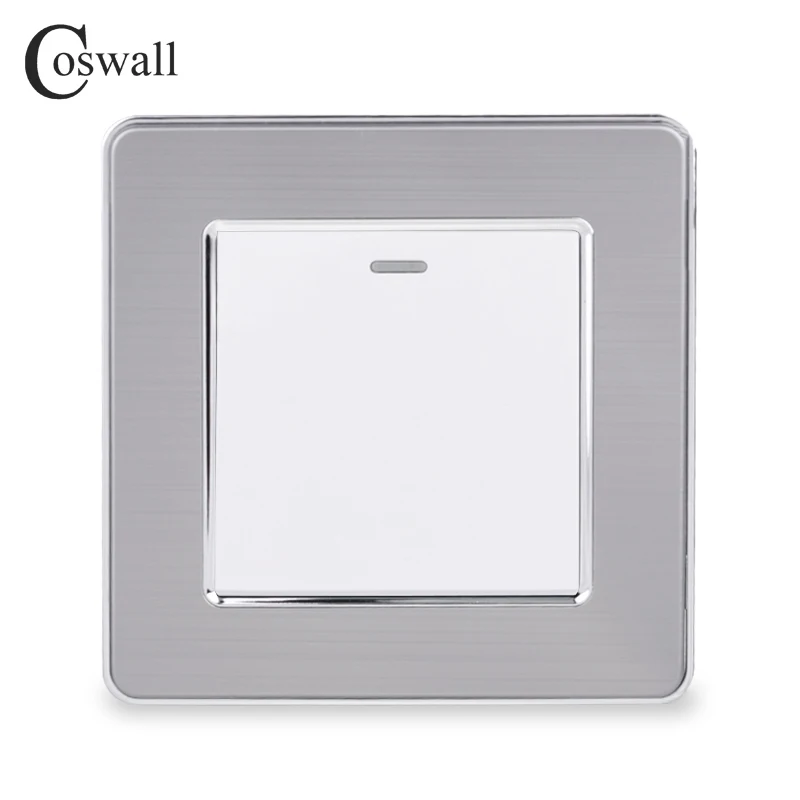 Coswall 1 Gang 1 Way Rocker Light Switch On / Off Wall Switch Stainless Steel Brushed Panel AC 12~250V White Black Gold