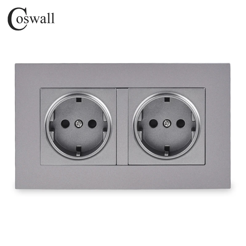 COSWALL Simple Style PC Panel 16A EU Standard Wall Power Double Socket Grounded With Children Protective Lock 146*86mm