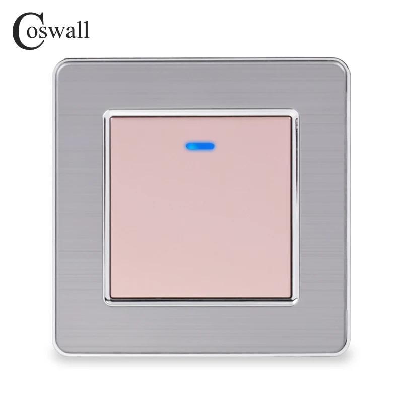 Coswall Stainless Steel Panel 1 Gang 1 Way Light Switch On / Off Wall Switch With LED Indicator 16A Black Gold Color