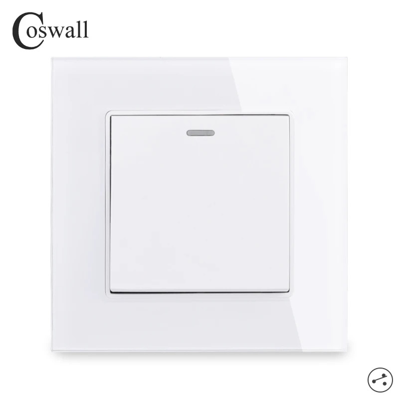 COSWALL 1 Gang 2 Way Stair Switch Crystal Tempered Glass Panel Rocker Light Switch On / Off Pass Through Wall Switch Switched