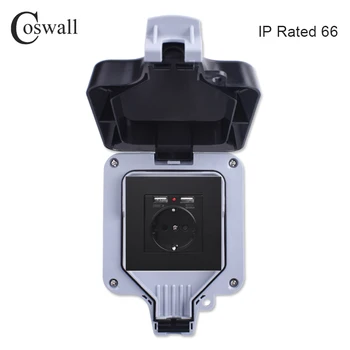 Coswall IP66 Weatherproof Waterproof Anti-UV Dust-proof Outdoor EU Standard Wall Socket With Dual USB Charging Surface Mounted