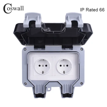 Coswall IP66 Weatherproof Waterproof Outdoor Wall Power Socket 16A Double EU Standard Electrical Outlet Grounded AC 110~250V