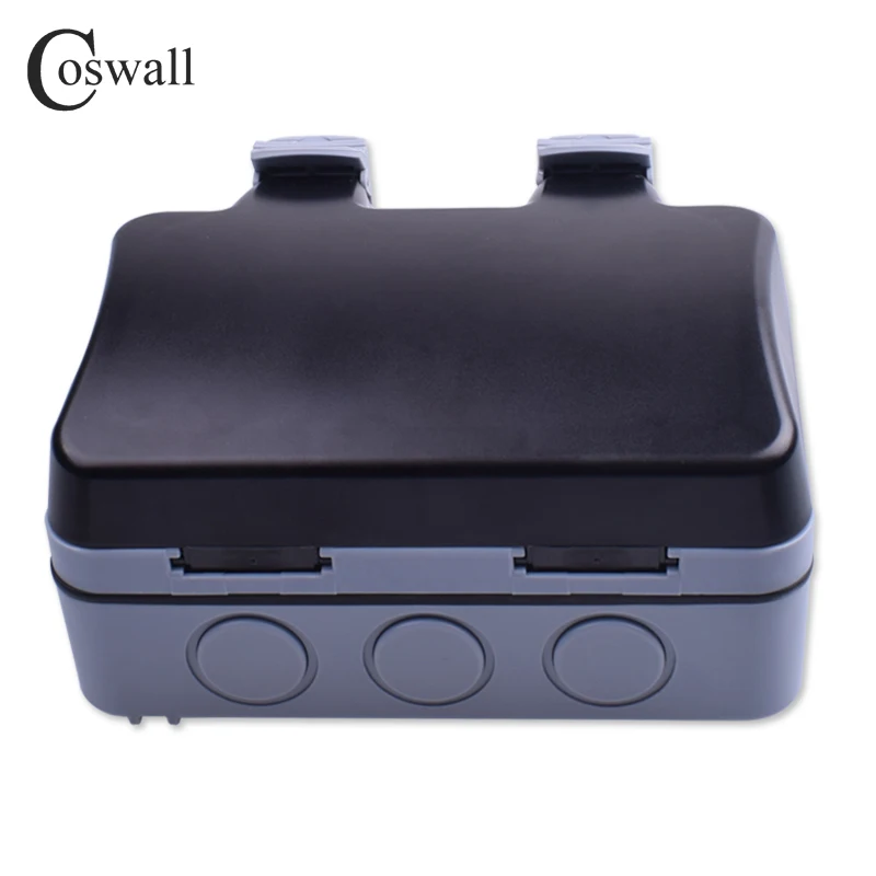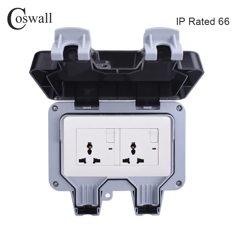Coswall IP66 Weatherproof Waterproof Outdoor Wall Power Socket 13A Double UK Standard Universal 3 Pin Outlet Switched