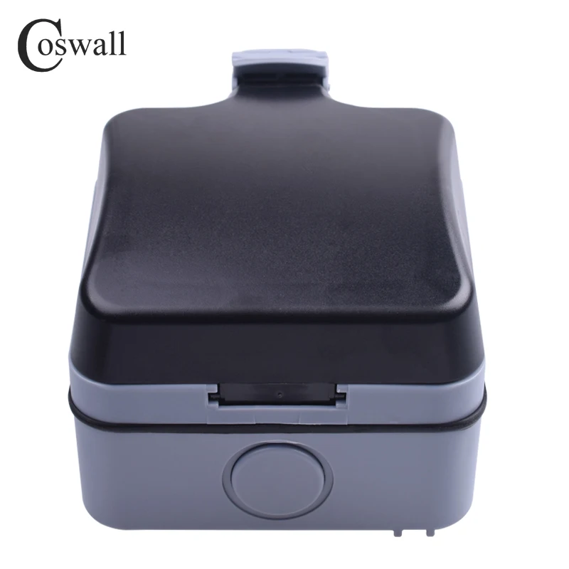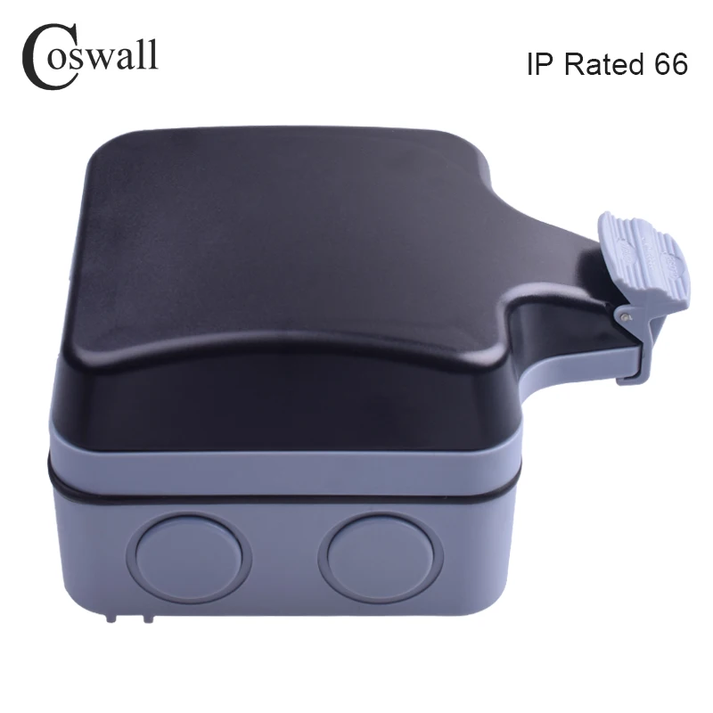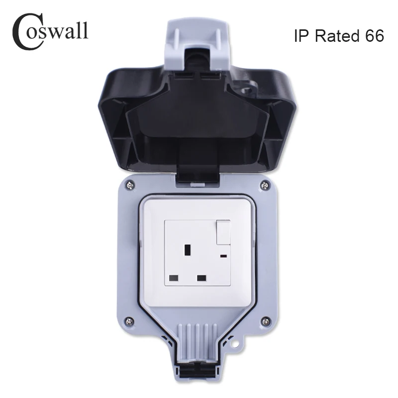 Coswall IP66 Weatherproof Waterproof Outdoor Box Wall Power Socket 13A Switched UK Standard Electrical Outlet Grounded With Neon
