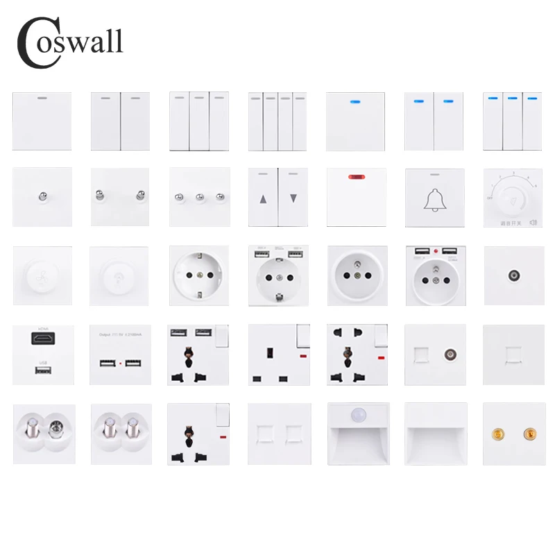 COSWALL White Pulse Curtain Doorbell Dimmer 20A Water Heater Footlight Blind Cover Fuse Wall Light Switch Backlight DIY Module
