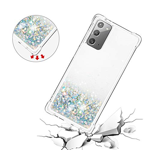 COTDINFOR Compatibile con Samsung Galaxy Note 20 Custodia Liquido Cases Brillantini Glitter Floating Trasparente Silicone Protettivo Phone Cover per Galaxy Note 20 TPU Love Silver YBWTLS.