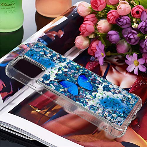 COTDINFOR Compatible with Motorola Moto G9 Plus Custodia Liquid Cases Bling Glitter Sparkle Floating Silicone Shockproof Phone Cover per Moto G9 Plus Case Blue Butterfly YB.