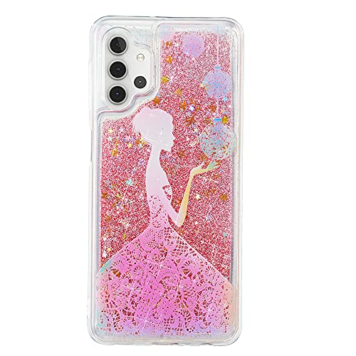 COTDINFOR Compatible with Samsung Galaxy A32 5G Coque Liquide Cover Bling Glitter Sparkle Floating Antichoc Protective Étui Housse Cover pour Galaxy A32 5G Pink Princess XYLS.