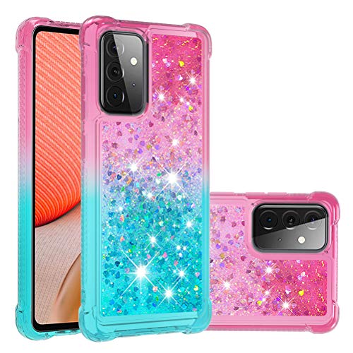 COTDINFOR Compatible with Samsung Galaxy A72 5G Custodia Bling Liquid Cases Glitter Sparkle Floating Silicone Antiurto Phone Case per Galaxy A72 5G Cover TPU Gradient Pink Blue YB.
