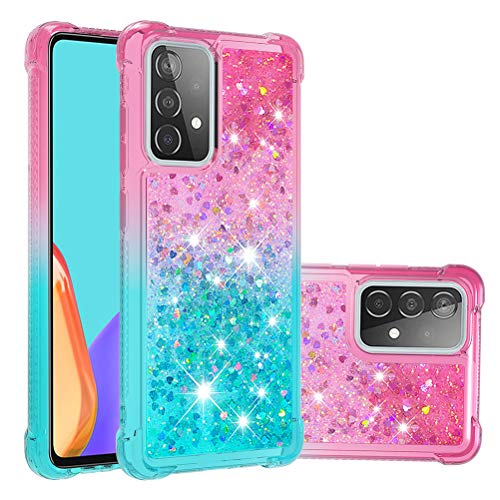 COTDINFOR Compatible with Samsung Galaxy A52 5G Custodia Bling Liquid Cases Glitter Sparkle Floating Silicone Antiurto Phone Case per Galaxy A52 5G Cover TPU Gradient Pink Blue YB.