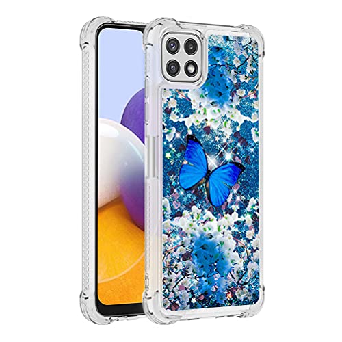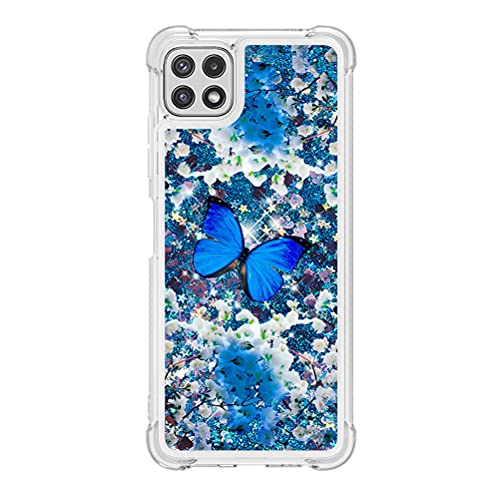 COTDINFOR Compatible with Samsung Galaxy A22 5G Custodia Liquid Cases Bling Glitter Sparkle Floating Silicone Shockproof Phone Cover per Galaxy A22 5G Case Blue Butterfly YB.