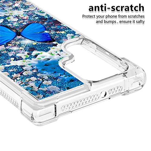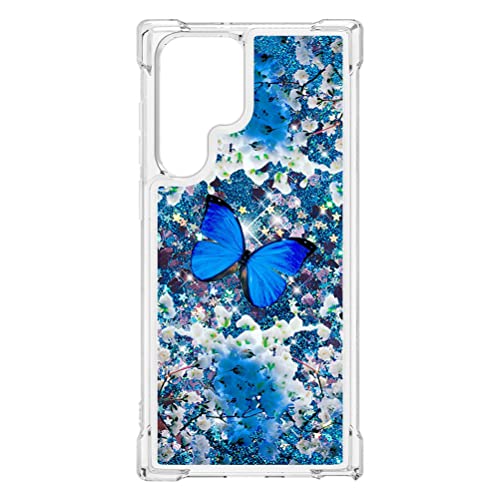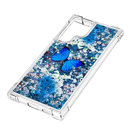 COTDINFOR Compatible with Samsung Galaxy S22 Ultra Custodia Liquid Cases Bling Glitter Sparkle Floating Silicone Shockproof Phone Cover per Galaxy S22 Ultra Case Blue Butterfly YB.