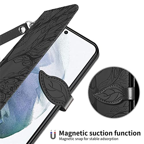 COTDINFOR Compatible with Samsung Galaxy S22 Ultra Custodia Lucky Tree Creativo PU in Pelle Portafoglio Slot per schede Magnetico Antiurto Flip Cover per Galaxy S22 Ultra Case Life Tree Black ZT.