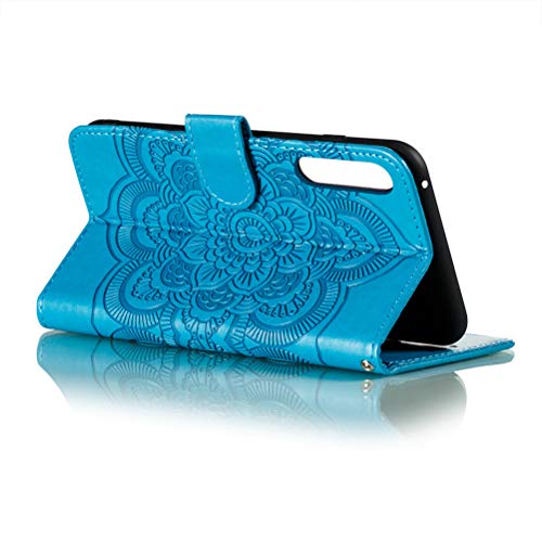 COTDINFOR Compatible with LG Velvet 5G Custodia Lucky Embossed Flower Shockproof PU Leather Card Holder Magnetic Lock Phone Cover per LG G9 / G90 / LG Velvet 5G Blue Mandala LD.
