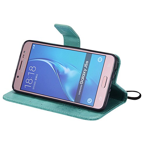 COTDINFOR Custodia per Samsung Galaxy Galaxy J5 2016 Cover Lucky Flowers Flip Portafoglio Case con Porta Carte Magnetic in Pelle Proteggi Cover per Galaxy Galaxy J5 2016 Sunflower Green KT