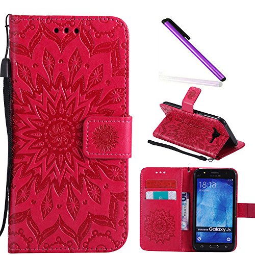 COTDINFOR Galaxy J5 Custodia Cover Lucky Flowers Girl Elegante Portafoglio di carte di credito Magnetic Flip Custodia in pelle Proteggi Cover per Samsung Galaxy J5 2015 Sunflower Red KT