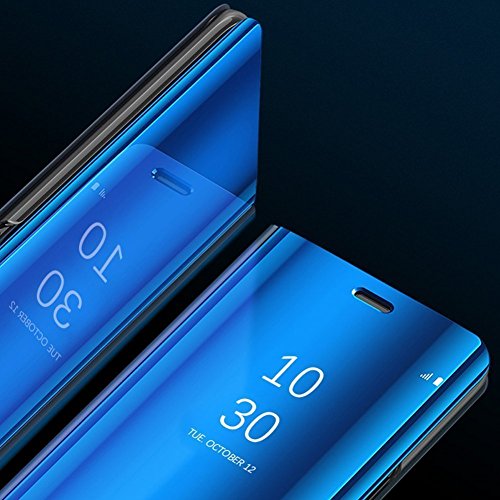 COTDINFOR Galaxy A7 2018 Custodia Placcatura Specchio Clear View Standing Cover Slim Mirror Flip Portafoglio Antiurto Case con Funzione Stand per Samsung Galaxy A7 2018 / A750 Mirror PU Blue MX.