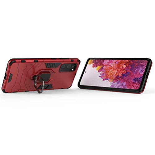 COTDINFOR Case for Galaxy S20 Fe 5G Custodia, Silicone TPU + Hard PC Shell Metal Ring Stand Holder Magnetic Car Mount Heavy Duty Armor Shockproof Cover per Samsung Galaxy S20 Fe 5G Case Red- KK.