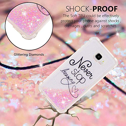 COTDINFOR pour Galaxy J4 Plus Custodia Silicone Trasparente Design Ultrasottile Bling Glitter Flowing Liquido Quicksand Cute TPU Bumper Custodia per Samsung Galaxy J4 Plus Pink Dreaming YB.