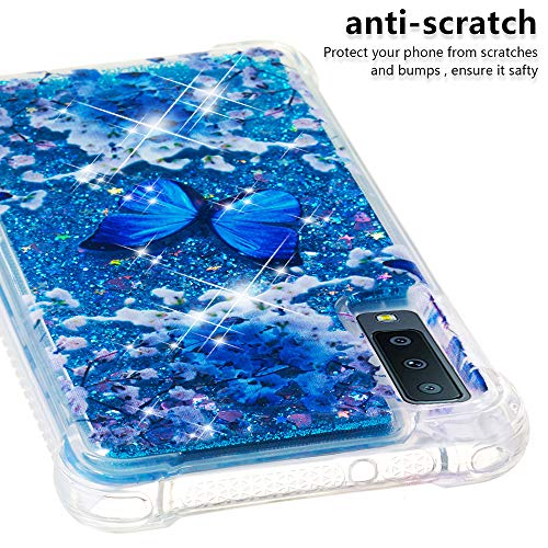 COTDINFOR pour Galaxy A750 Custodia Silicone Trasparente Design Ultrasottile Bling Glitter Flowing Liquido Quicksand Cute TPU Bumper Custodia per Samsung Galaxy A7 2018 Blue Butterfly YB.