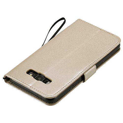 COTDINFOR Galaxy J7 2016 Case Premium PU Custodia in Pelle Cash Pocket Flip Custodia a Portafoglio Chiusa con Slot per Carta di Credito per Samsung Galaxy J7 2016 Gold Wishing Tree with Diamond KT.