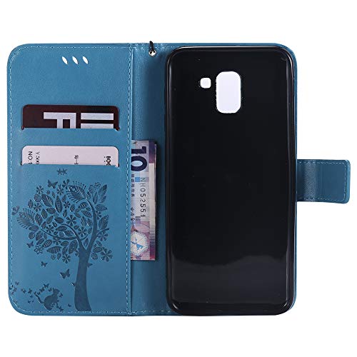 COTDINFOR Galaxy J6 2018 Case Premium PU Custodia in Pelle Cash Pocket Flip Custodia a Portafoglio Chiusa con Slot per Carta di Credito per Samsung Galaxy J6 2018 Blue Wishing Tree with Diamond KT.