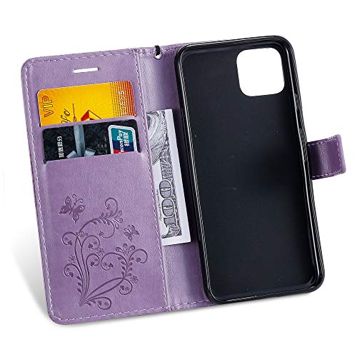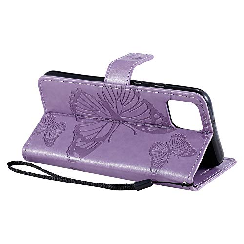 COTDINFOR per Google Pixel 4 Custodia Premium PU Leather Flip Ultrasottile Antiurto Elegante Retro Magnetico Portafoglio Cover Case per Google Pixel 4 Big Butterfly Light Purple KT.