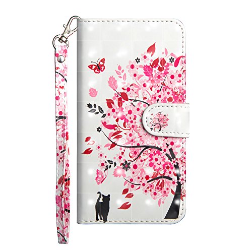 COTDINFOR pour Huawei Y5 2019 Custodia Cover TPU 3D Effect Painted PU in Pelle con Wallet Card Holder Magnetico Ultrasottile Antiurto Flip Custodia per Huawei Y5 2019 Flower Tree Cat YX
