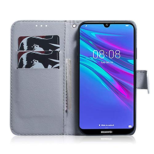 COTDINFOR pour Huawei Y6 2019 Custodia Creativo Dipinto Premium PU in Pelle con Wallet Card Holder Magnetico Ultrasottile Antiurto Flip Custodia per Huawei Y6 2019 Apricot Flower TX-CH.