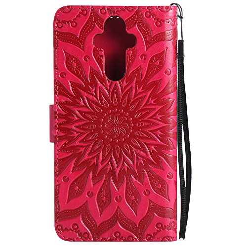 COTDINFOR Huawei Mate 9 Custodia Premium PU Leather Mandala Fiore Wallet Custodia a Rilievo Custodia Flip Case con Kickstand Card per Huawei Mate 9 Red Sunflower KT.