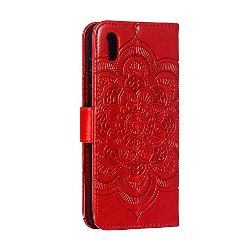 COTDINFOR per Huawei Y5 2019 Custodia Premium PU Leather Flip Ultrasottile Antiurto Elegante Retro Magnetico Portafoglio Cover Case per Huawei Y5 2019 Red Mandala LD.
