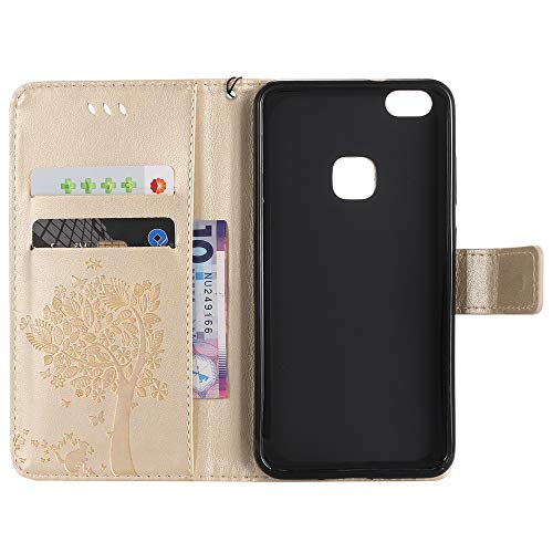 COTDINFOR Huawei P10 Lite Case Premium PU Custodia in Pelle Cash Pocket Flip Custodia a Portafoglio Chiusa con Slot per Carta di Credito per Huawei P10 Lite Gold Wishing Tree with Diamond KT.